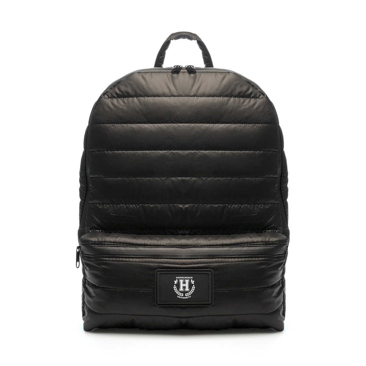 Polyester ‘bubble’ rucksack with front zipper pocket and padded, adjustable shoulder straps. There is a faux leather patch stitched to the front pocket for your company logo