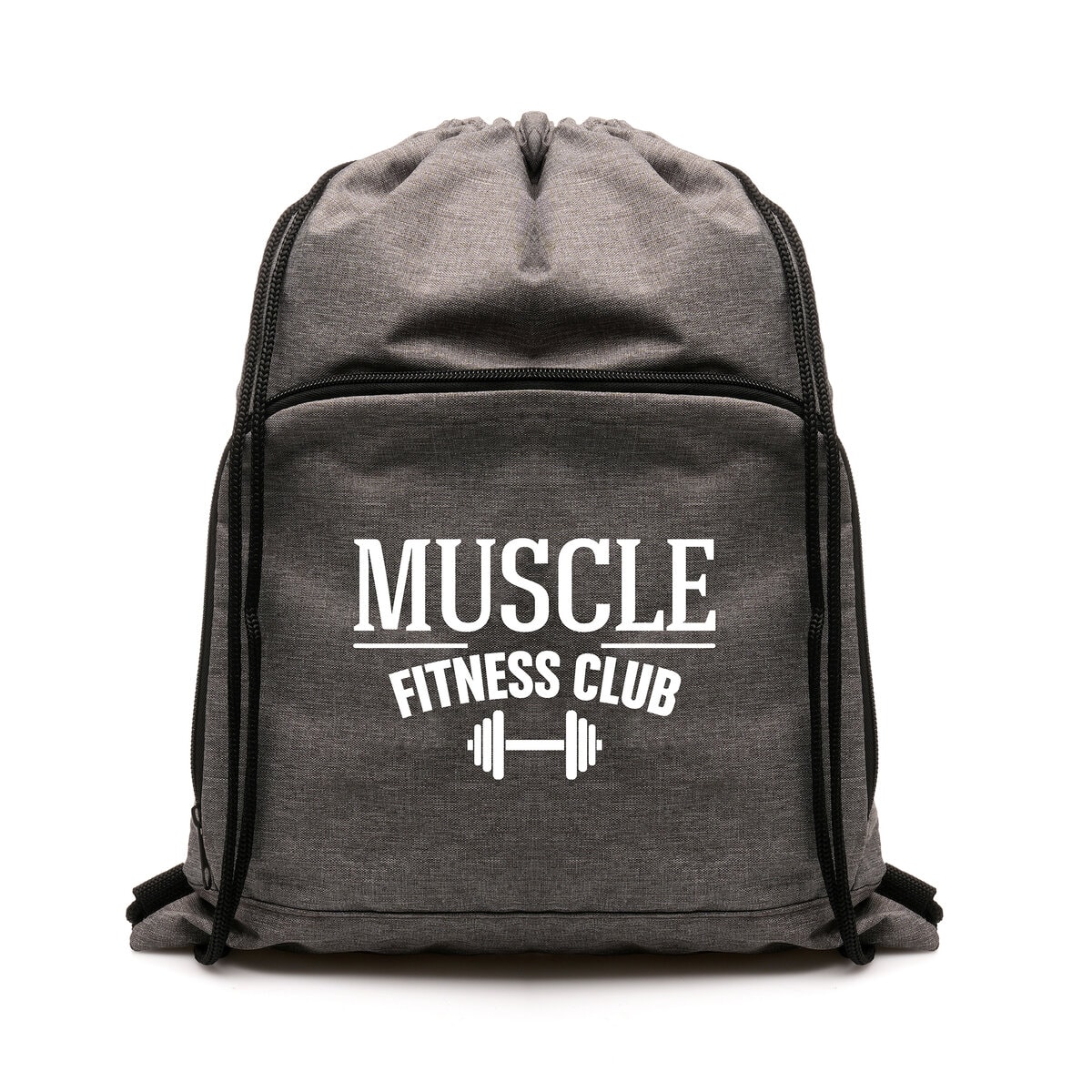 Foldable drawstring bag made from 600D RPET material with thick rope drawstrings and front zip pocket where the bag can be stored for ease. Zipper made from recycled nylon.